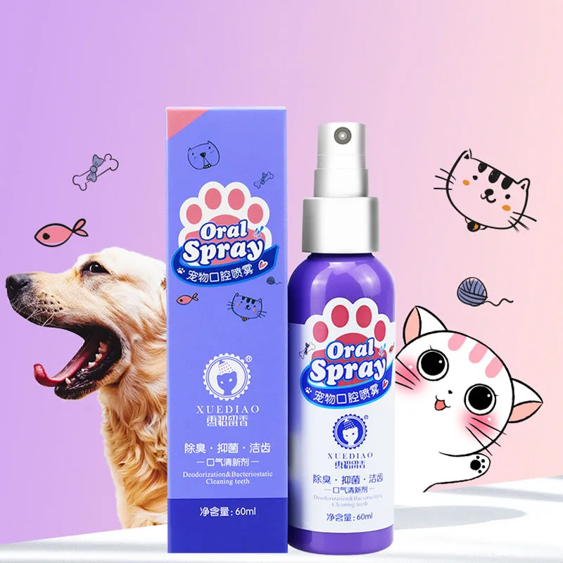 60ML Pets teeth fresher Pet Spray Dog Oral Care Bad Breath Teeth Cleaning Breath Freshener Plaque R